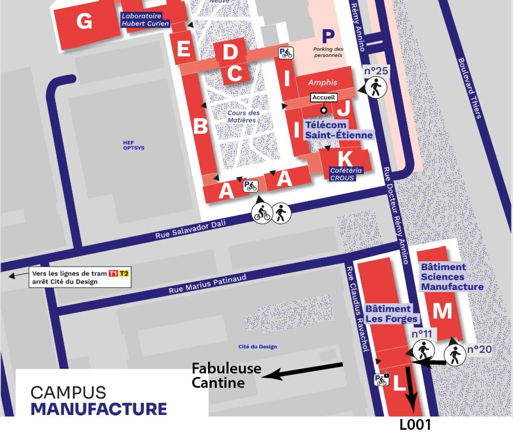 Les conférences se déroulent sur les sites Tréfilerie (33 rue du 11 novembre) et Manufacture (11 rue Dr Rémy Annino) à Saint-Etienne (France)